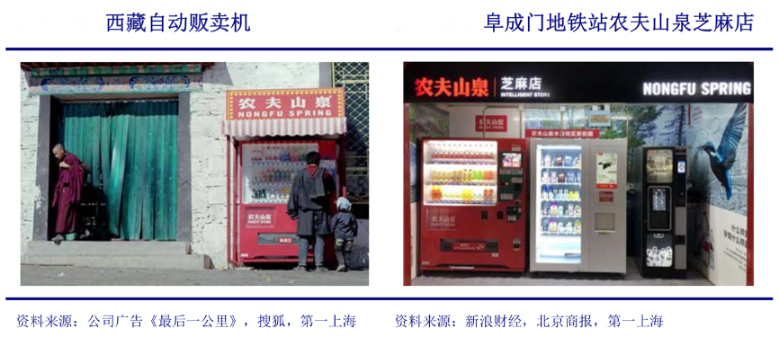 經典案例:根據公司廣告《最后一公里》、搜狐、第一上海、新浪財經、北京商報等綜合資訊表明,農夫山泉目前正積極拓展以自動販賣機為代表的新零售渠道、線上渠道等發展,截至 2020 年 5 月 31 日公司已投放近 62,900 臺以上 智能終端零售設備。