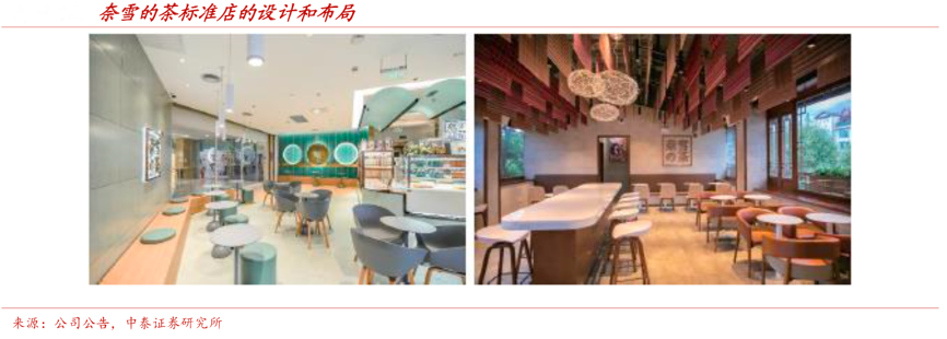 經典案例:根據公司公告、中泰證券研究所等綜合資訊表明,典型的“奈雪的茶”茶飲店規模一般為 180~350 平方米,可容納 50~120 位顧客。茶飲店的設計融入藝術元素,營造一種溫暖、舒適、休閑輕松的氣氛,提升客戶體驗,增加停留時間。