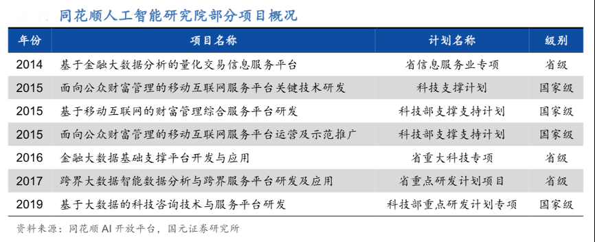 經典方法:根據同花順AI開放平臺、國元證券研究院等綜合資訊表明,近年來同花順人工智能研究院持續加大對大數據、人工智能等領域的研發投入,其自 2009 年起共承接 17 項國家級、省級重點項目,為推進基于 AI 技術的解決方案作出了較大的貢獻。