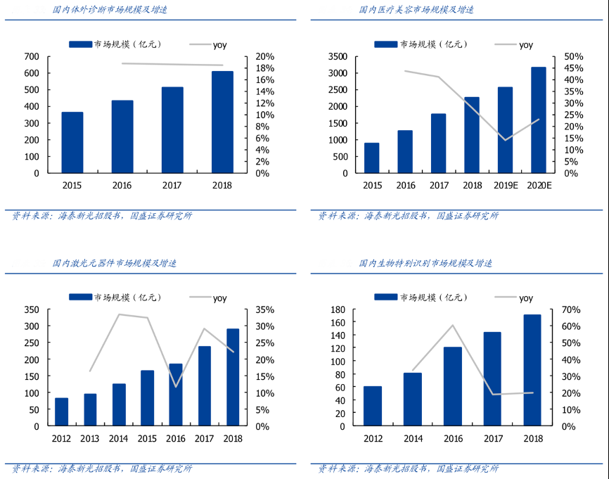 經典案例:根據海泰新光招股書、國盛證券研究所等綜合資訊表明,目前,生物識別技術已被廣泛應用到電子護照、生物特征身份證、銀行系統、 公安系統、電子商務、電子政務等系統中,提高了社會運行效率。海泰新光的生物識別產品主 要包括指紋儀、掌紋儀等,主要用于公安、司法等系 統部門的人員指掌紋采集。根據中國電子技術標準化研究院公布的《生物特征識別白皮書》顯示,我國生物特征識別市場規模由 2012 年的 60 億 元增長至 2018 年的 170.1 億元,2009-2018 年,我國生物識別技術專利量年復合增長率達 39.43%。