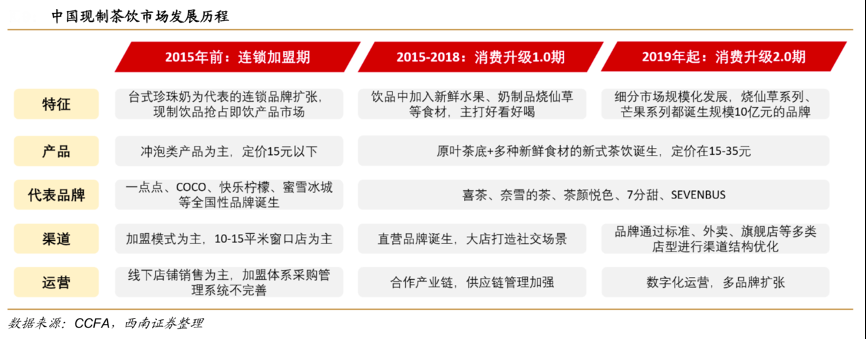 經(jīng)典案例:根據(jù)CCFA、西南證券等綜合資訊表明,茶飲細(xì)分市場正規(guī)模化發(fā)展,茶顏悅色、一只酸奶牛等具備產(chǎn)品差異化優(yōu)勢的品牌快速發(fā)展,燒仙草、芒果產(chǎn)品系列都誕生了銷售規(guī)模 10 億元+的品牌。高端頭部品牌注重品牌形象打造、數(shù)字化運營、供應(yīng)鏈建設(shè)。