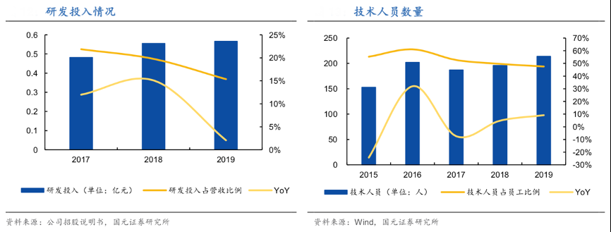 經典案例:根據公司招股說明書、wind、國元證券研究所等綜合資訊表明,福昕軟件2017-2019 年,公司研發投入 CAGR 達 8.97%,累計達 1.60 億元,占累計營業收入的比例 18.42%,維持在較高水平。技術人員是其核心生產力,2019 年底占員工總數達 47.56%。