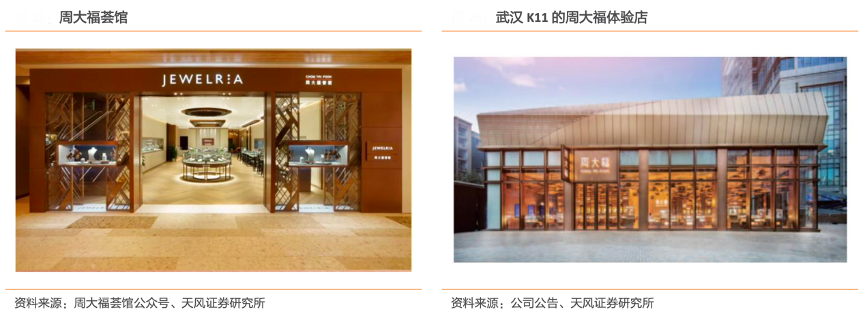 經典案例:根據周大福薈館公眾號、公司公告和天風證券研究所等綜合資訊表明,周大福開展了各種具針對性的零售店鋪體驗,周大福 薈館,作為提升零售店鋪體驗的措施之一,除了自家設計的標志性系列外,還持續為顧客提供國際設計師及珠寶品牌的更多產品。在 2021 財年,周大福薈館占中國內地周大福珠寶零售額的 6%,珠寶鑲嵌首飾的平均售價約為 10000 港元,較平均同店售價高約40%。