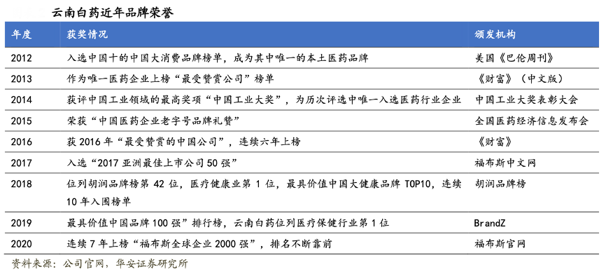 經(jīng)典案例:根據(jù)公司官網(wǎng)、華安證券研究所等綜合資訊表明,云南白藥卓著的功效譽滿中外,已經(jīng)榮獲多個實力品牌價值獎項。在胡潤品牌榜、BrandZ 發(fā)布的品牌排行榜中,持續(xù)穩(wěn)居行業(yè)首位。云南白藥通過不斷深挖“白藥品牌”的內(nèi)涵和核心價值,現(xiàn)已形成專屬白藥的核心競爭優(yōu)勢。