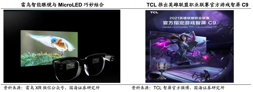 經(jīng)典案例:根據(jù)雷鳥XR微信公眾號、TCL智屏官方微博、國海證券研究所等綜合資訊表明,TCL電子公司積累多項 AR 關鍵 技術專利,2021 年 10 月發(fā)布 Micro LED 全息光波導 AR 眼鏡“雷鳥智能眼鏡 先鋒版”,其從產(chǎn)品端打入年輕化圈層,與 IMAX 達成深度合作,定位“Z世代第一個家庭私人影院”,巨幕智屏 Q6E 具有電競六神裝,具備大內(nèi)存、低延遲、高刷新率等配置。2021年 TCL 與 EDG 戰(zhàn)隊進行戰(zhàn)略合作,戰(zhàn)隊奪冠后再次刷新TCL 于 Z世代電競愛好者心中的存在感。