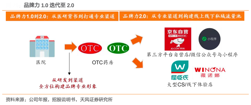 經典案例:根據公司年報、招股說明書和天風證券研究所等綜合資訊表明,貝泰妮公司持續深耕 OTC 藥房渠道,通過藥房渠道迭代更強的品牌專業性認知。從合作單位方面,其積極推動渠道合作走出云南,與山東、陜西等區域連鎖龍頭啟動戰略合作項目,覆蓋更多區域 OTC 渠道;從合作深度和方式角度,OTC渠道線上線下相結合,通過連鎖藥房互聯網化、藥房會員數字化嘗試將連鎖 OTC 會員轉化為品牌穩定的私域流量。
