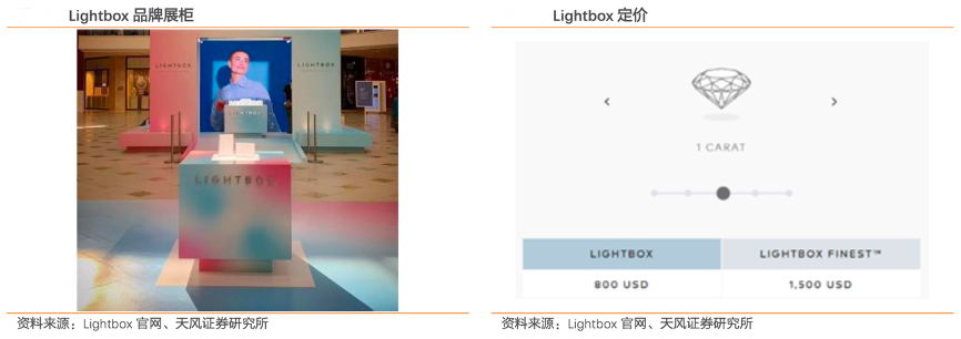 經(jīng)典案例:根據(jù)Lightbox官網(wǎng)、天風(fēng)證券研究所等綜合資訊表明,作為 De Beers 旗下的獨立子公司,Lightbox 在2018 年推出時就得到了 De Beers 技術(shù)公司 1 億美元投資的支持,為消費者提供品質(zhì)卓越、價格適中的培育鉆石。該品牌 還是集團旗下唯一使用子公司 Element Six 鉆石實驗室提供的技術(shù)用合成鉆石的珠寶品牌。