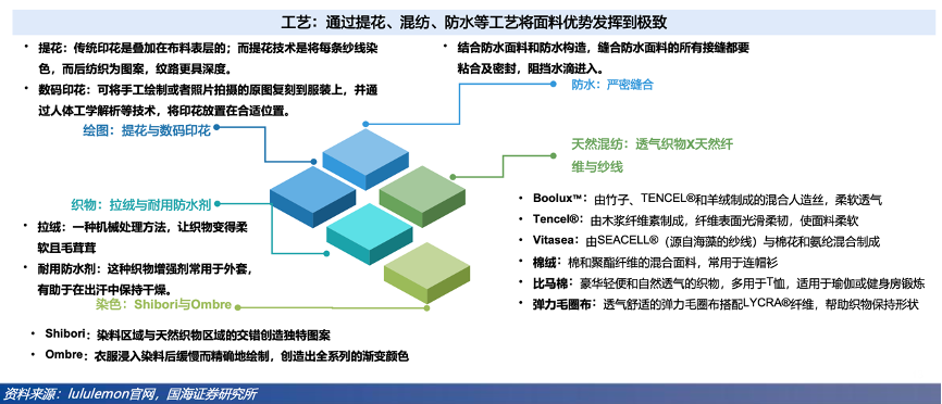 經典案例:根據LuLuLemon官網、國海證券研究所等綜合資訊表明,Lululemon的設計理念是在最需要的關鍵部位提供完美支撐,而其他部位則自由無舒服,這樣的穿著感通過兩種不同構造來打造,優秀工藝突出。