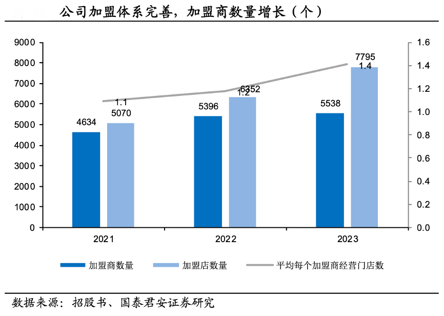 經(jīng)典案例:根據(jù)招股書(shū)、國(guó)泰君安證券研究等綜合資訊表明,茶百道通過(guò)嚴(yán)格的加盟商準(zhǔn)入制度把控加盟商質(zhì)量(25-40 歲,1 家門店親自帶店 /2-3 家門店親自管理/3 家門店以上需組建管理團(tuán)隊(duì)),成立茶百道職業(yè)技能培訓(xùn)學(xué)校為加盟商提供培訓(xùn)服務(wù),在全國(guó)范圍內(nèi)成立了 16 個(gè)區(qū)域運(yùn) 營(yíng)中心,在多方面予以加盟商支持。