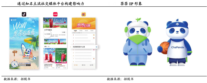 經(jīng)典案例:根據(jù)招股書(shū)、國(guó)泰君安證券研究等綜合資訊表明,茶百道數(shù)字化營(yíng)銷、IP 營(yíng)銷和品牌聯(lián)名建立強(qiáng)大的線上影響力。其通過(guò)品牌 IP“茶茶”提升品牌形象,設(shè)計(jì)并推出 “茶茶”表情包、“茶茶”特色創(chuàng)意商品,并與 KOL 及網(wǎng)紅進(jìn)行合作。