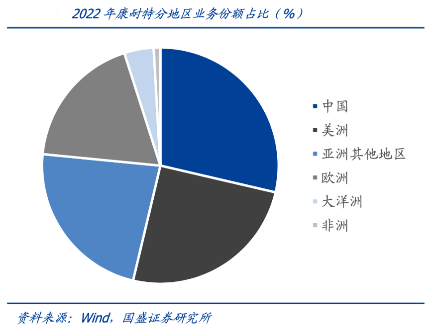 經(jīng)典案例:根據(jù)wind、國盛證券研究所等綜合資訊表明,康耐特扎根海外市場,積極提升國內(nèi)品牌影響力。目前公司國際業(yè)務(wù)占比約 71.4%,以歐美地區(qū)為主,其中美洲/其他亞洲地區(qū)/歐洲分別占比 25.1%/22.8%/18.5%。