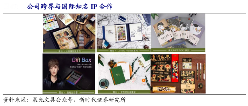 經典案例:根據晨光文具公眾號、新時代證券研究所等綜合資訊表明,晨光公司設計融合當下流行元素,成立精品文創事業部,逐漸提升文創產品占比,設計出一系列深受好評的趣味產品,如錦鯉按動中性筆、喵星人橡皮等。同時,其與超強 IP 合作,提升產品辨識度,如推出晨光×鹿晗生日季、晨光×正義聯盟, 晨光×大英博物館,晨光×時尚芭莎等一系列爆款產品。