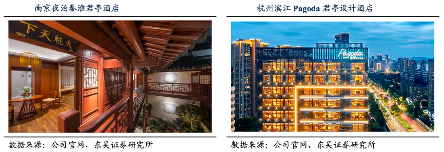 經典案例:根據公司官網、東吳證券研究所等綜合資訊表明,君亭依托區域文化特色差異,針對目標消費者需求,創新性推出酒店品牌溢出、高坪效設計等理念,形成強勁排他的品牌影響力,如與南京夫子廟文化旅游集團聯手打造的夜泊秦淮系列,依托秦淮河文化,探索“城人事美”,對當地建筑歷史文化、人文美學再創作,由酒店服務提供者轉變為文化故事講述者,以文化元素強勢賦能品牌競爭力。
