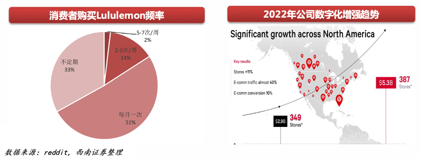 經典案例:根據reddit、西南證券等綜合資訊表明,Lululemon通過分析這些大數據,可以更快和更精準的把傳播內容點對點的鋪蓋到每個顧客,與客戶建立以情感為基礎的正向交流,增強客戶粘性,從而讓社群裂變,擴大自己的客戶人群,提高產品復購率。根據Reddit網站統計,51%lululemon消費者會每個月購買一次,33%消費者購買頻次不固定,14%消費者每周會購買兩三次; 2%的消費者每周會購買5-7次。