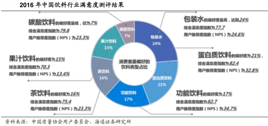 經典案例:根據中國質量協會用戶委員會、海通證券研究所等綜合資訊表明,在中國質量協會用戶委員會發布的《2016 年中國飲料行業滿意度測評結果》 中,中國質量協會通過“行業熱度模型”對行業的發展現狀和未來走向做出宏觀的判斷,其中功能飲料的熱度模型呈持續升溫狀態,其品類特征極大提升了自己的“產品價值認同度”。