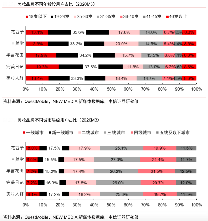 經典案例:根據QuestMobile、New MEDIA新媒體數據庫、中信證券研究部等綜合資訊表明,完美日記與國際高端品牌錯位競爭,目標客群為年齡在 15-24 歲的 Z 世代和 25-34 歲的千禧一代;其中最核心的目標人群為Z 世代,該年齡段的主力人群購買力有限,但有一定的眼界和主張,追求個性表達、精神共鳴;需要低價,也對品質有一定要求,還需要附加精神屬性。