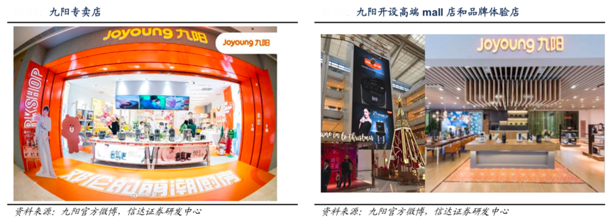 經典案例:根據九陽官方微博、信達證券研發中心等綜合資訊表明,九陽公司根據目標消費人群的不同,對于終端門店進行了差異化布局。對于一二線城市,其將部分終端門店改造成高端 Shopping Mall 店,并開設品牌體驗店、旗艦店等,提升品牌整體定位形象。針對三四線城市,其更多開設的是品牌專賣店,提供更多產品展示從而提高品牌產品教育,挖掘潛在消費者。
