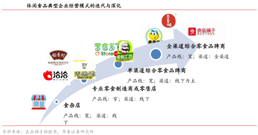 休閑食品的數字品牌營銷策劃是全渠道的,線上線下一體化的,高度融合主題化、多元化和休閑化的“食品消費場景”。根據良品鋪子招股書、華泰證券研究所等綜合資訊表明,休閑食品企業的經營模式日趨迭代與深化,從傳統的食雜店、專業零售制造商、單渠道品牌商向“全渠道綜合食品品牌商”發展,休閑食品的全渠道、數字化和品牌化經營成為行業常態。