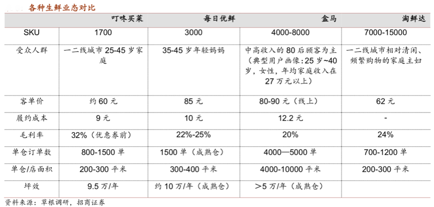 根據草根調研、招商證券等綜合資訊顯示,各種生鮮業態多樣,最近興起的“生鮮前置倉”、“社區拼團”等生鮮新零售模式,其代表品牌如叮咚買菜、每日優鮮等,無不強調前端的人群鎖定,積極拓寬生鮮消費人群,提升生鮮產品客單價,積極聚合消費,提升倉儲周轉率,創新生鮮新零售模式策劃運營,推進數字品牌營銷策劃。