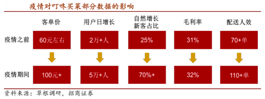 經典案例:據草根調研、招商證券等各方面資訊顯示,在用戶增長方面,叮咚買菜用戶日增長由 2 萬+ 增長到 5 萬+,自然增長新客在總新客中的占比由原先的 25%增長到 70%,大幅降低了叮咚買菜的獲客成本。