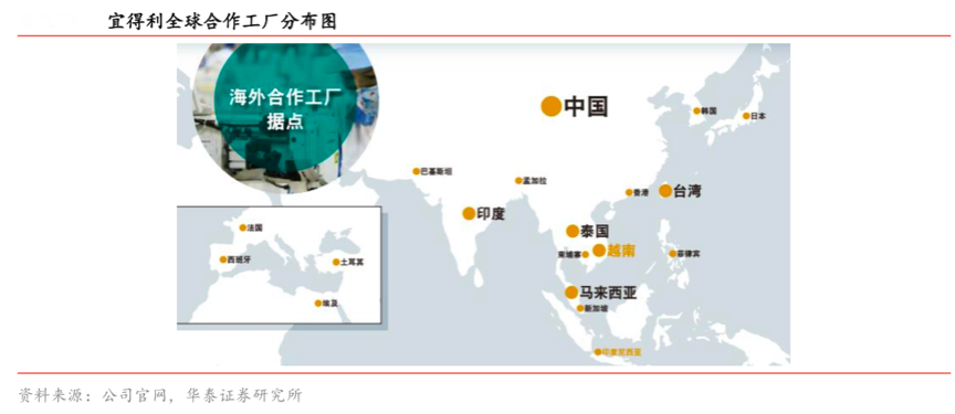 根據(jù)公司官網(wǎng)、華泰證券研究所等綜合資訊表明,截至 2018 年末,宜得利與分布在 18 個(gè)國(guó)家和地區(qū)的超 740 家海外工廠建立合作關(guān)系,擁有印尼、越 南河內(nèi)、越南巴地頭頓 3 家大型海外自建工廠,負(fù)責(zé)碗柜、沙發(fā)、床墊等大型家具的開(kāi)發(fā)和生產(chǎn),多地生產(chǎn)、總部質(zhì)量管控,確保品質(zhì)如一。