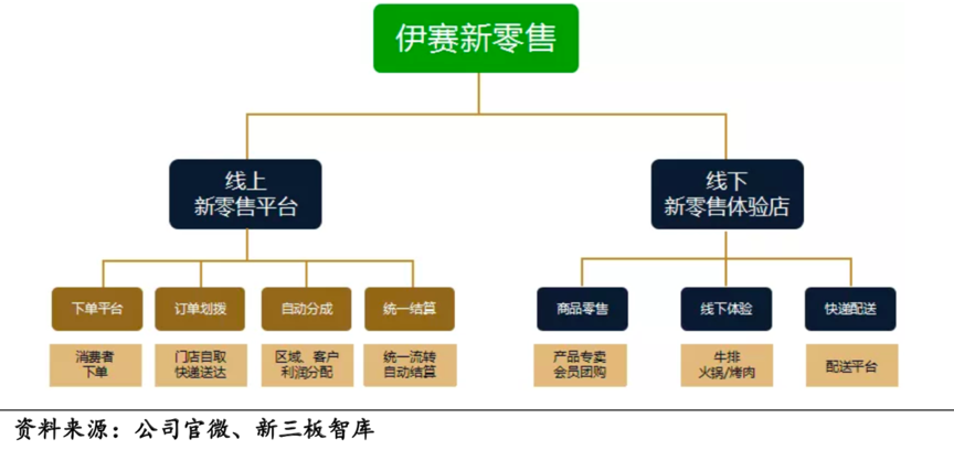 經(jīng)典案例:據(jù)公司官網(wǎng)及新三板智庫(kù)資料顯示,伊賽的新零售分為“線(xiàn)上新零售平臺(tái)”和“線(xiàn)下新零售體驗(yàn)店”。線(xiàn)上新零售平臺(tái)的運(yùn)作模式主要可以歸納如下:下單平臺(tái)(消費(fèi)者下單),訂單劃撥(門(mén)店自取或快遞送達(dá)),自動(dòng)分成(區(qū)域、客戶(hù)利潤(rùn)分配),統(tǒng)一結(jié)算(統(tǒng)一流轉(zhuǎn)、自動(dòng)結(jié)算)四個(gè)環(huán)節(jié)。線(xiàn)下新零售體驗(yàn)店運(yùn)作模式主要?dú)w納如下:商品零售(產(chǎn)品專(zhuān)賣(mài)、會(huì)員團(tuán)購(gòu)),線(xiàn)下體驗(yàn)(牛排、火鍋、涮肉),快遞配送(配送平臺(tái))四個(gè)環(huán)節(jié)。