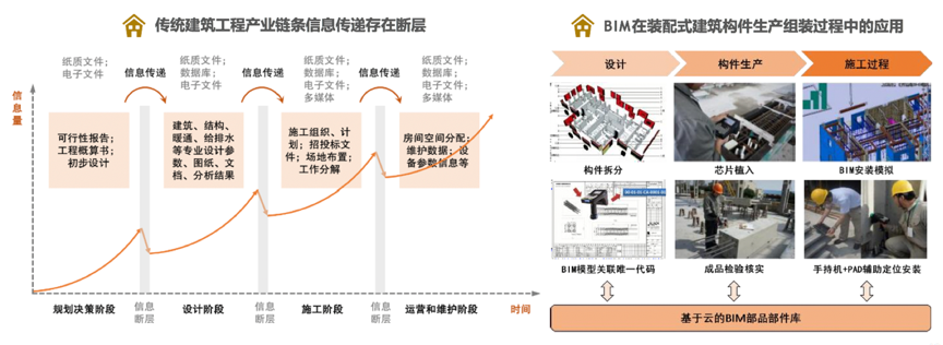 根據(jù)平安證券研究所等綜合資訊表明,BIM技術(shù)的引入可以將設(shè)計方案、制造需求、安裝需求集成在BIM模型中,在實際建造前統(tǒng)籌考慮設(shè)計、制造、安裝的各種要求,把實際制造、安裝過程中可能產(chǎn)生的問題提前消滅。傳統(tǒng)的裝配式建筑設(shè)計方法中是通過預(yù) 制構(gòu)件加工圖來表達(dá)預(yù)制構(gòu)件的設(shè)計,其平立剖面圖紙還是傳統(tǒng)的二維表達(dá)形式。