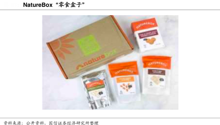 經典案例:NatureBox創立于 2012 年,其快速增長源于它獨特的商業模式——消費者每月能以 19.95 美元的價格獲得 NatureBox 遞送的“零食盒子”,盒中放有 NatureBox 為每個用戶精心選擇、搭配的健康零食,并可從配料、口味等角度對自己的零食盒子進行定制,極大程度上滿足了消費者對健康零食的個性化需求。