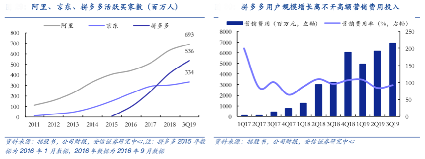 經(jīng)典案例:拼多多抓住下沉市場機遇快速發(fā)展已實現(xiàn)流量壁壘。拼多多自2015 年 9 月成立以來,5年間已積累5.36 億活躍買家,這些活躍的買家就是拼多多的強大的“流量壁壘”,流量優(yōu)勢既已建立,新的參與者想要實現(xiàn)拼多多的流量規(guī)模需要大量的時間和資金投入。