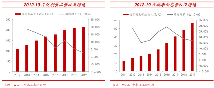 “吃得健康&吃出品質”是食品消費的“行業基礎性消費標配”之一,各大企業紛紛強化健康原料的植入、環保工藝的加入等,放大食品的品質價值和品牌價值,因各品類不同消費特性呈現不同商業價值。根據wind、中泰證券研究所等綜合資訊顯示,從健康化的消費趨勢來看,短保品由于其新鮮、健康等優勢,容易占領更多市場份額。從上市公司的業績表現來看,國內長保烘焙的龍頭達利食品的烘焙糕點類收入從 2016 年開始進入增長瓶頸,2017 年甚至開始 出現下滑(同比 2.45%)。