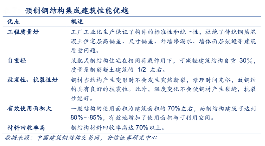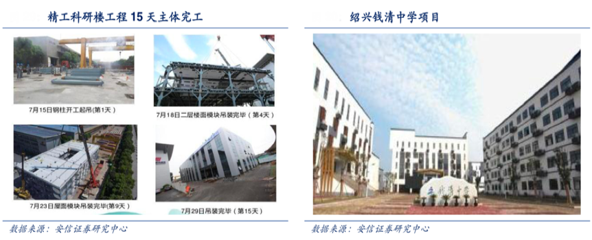 經典案例:根據安信證券研究中心等綜合資訊表明,“精工科研樓”是精工鋼構的樣板項目,此科研樓為 3 層建筑,面積 3500 平方米,僅耗時 15 日完成主體工程, 實現 30 日竣工,工程裝配率達到 90%以上,產品集成率達到 85%以上。