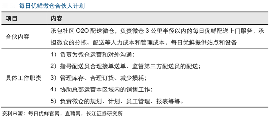 經(jīng)典案例:每日優(yōu)鮮,推進“微倉合伙人計劃”,廣泛招募“渠道合作伙伴”,由此完善物流網(wǎng)點配置,強化前置倉庫存管理、物流配送、上門服務等,統(tǒng)籌前置倉信息管理、計劃管理、會員服務等。