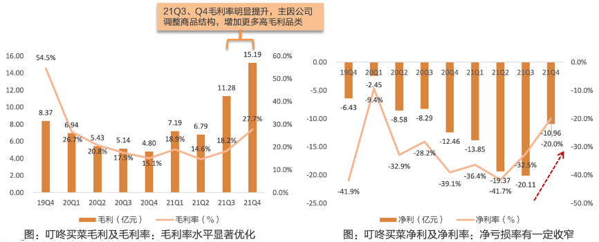 經(jīng)典案例:根據(jù)叮咚買菜招股書、叮咚買菜年報、叮咚買菜季報、叮咚買菜2021Q4業(yè)績會紀(jì)要、天風(fēng)證券研究所等綜合資訊表明,叮咚買菜公司毛利率從2019年的17.1%增至2021年的20.1%,原因在于公司商品力的不斷提高:1)公司自產(chǎn)自加工能力提升,產(chǎn)生額外毛利;2)公司上游供應(yīng)鏈的長期投資開始見效;3)高毛利品類(如預(yù)制菜)的比例上升。