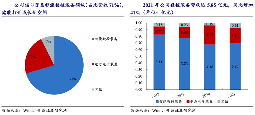 經典案例:根據wind、開源證券研究所等綜合資訊表明,同飛股份同時覆蓋數控裝備領域及電力電子溫控兩大領域,橫向延伸儲能領域,其中的數控裝備領域(占比:71%)為公司核心業務,2021年實現營收 5.85 億 元,同比增長41%。技術及產品性能均處于行業領先地位。