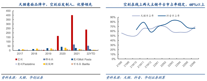 經(jīng)典案例:根據(jù)天貓、抖音、華創(chuàng)證券等綜合資訊表明,空刻目前新品衍生的兩個思路,一是規(guī)格上,意面 800 多年歷史,具備扁平形/通心粉/ 蝴蝶形等 300 多種規(guī)格;二是口味創(chuàng)新,同時也針對兒童推出 Mini 裝拓寬消費(fèi)人群。 但輕烹的定位始終受限于,無法脫離廚具再加工,差旅/露營等非居家場景目前尚未打開。類比美日常見的微波爐意面(百味來),甚至可布局便利店、自動售貨柜,既能打開消費(fèi)場景和人群,也能起到品牌露出和展示功效。