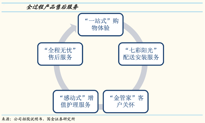 經典案例:根據公司招股說明書、國金證券研究所等綜合資訊表明,慕思公司此前已推出集全生命周期場景體驗、全程睡眠數據檢 測服務、睡眠咨詢服務、深度除螨服務、全生活場景體驗、七彩陽光配送安裝 服務于一體的 360°金管家服務,為客戶提供覆蓋售前、售中、售后的全過程服 務體驗,并在圣誕節為客戶送上節日關懷。