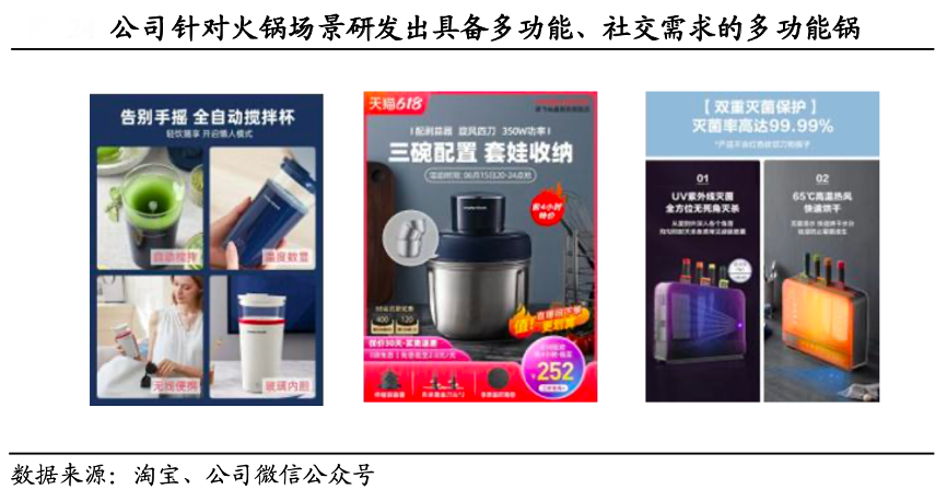 根據淘寶、國泰君安證券研究等綜合資訊表明,新寶股份公司通過持續創新推出爆款來打造品牌內涵,不斷搭建行業領先的消費者洞察能力,已在多個產品上得到體現。搖搖杯、套娃絞肉機及消 毒菜板等產品陸續引爆。