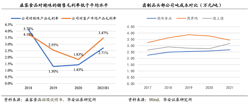 經典案例:根據益客食品招股說明書、wind、華安證券研究所等綜合資訊表明,絕味公司通過產業投資向產業鏈上游延伸,加強對原材料成本的控制能力。被投企業包括肉鴨全產業鏈大型企業——內蒙古塞飛亞農業科技公司,以及調味品、醬料、油脂等 生產公司幺麻子等。2021 年公司向塞飛亞及幺麻子采購原材料金額分別為6112.0/429.2 萬元。從公司成本結構來看,直接材料占比在 80%以上,公司的原材料采購優勢有助于降低整體營業成本。與同行主要競爭對手相比,絕味的鹵制品生產平均成本更低。