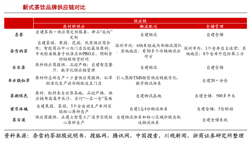 經(jīng)典案例:根據(jù)奈雪的茶招股說明書、搜狐網(wǎng)、騰訊網(wǎng)、中國搜索、川觀新聞、浙商證券研究所等綜合資訊表明,以奈雪的茶為例,根據(jù)《“數(shù)字化進階”-2020 新式茶飲白皮書》及奈雪的茶招股書,公司自建茶園、果園、花園來實現(xiàn)食材的一致性,同時降低原材料成本;配置中央廚房,從而免去大部分門店的大面積后廚,降低租金成本同時實現(xiàn)了烘焙產(chǎn)品的規(guī)模化生產(chǎn)。