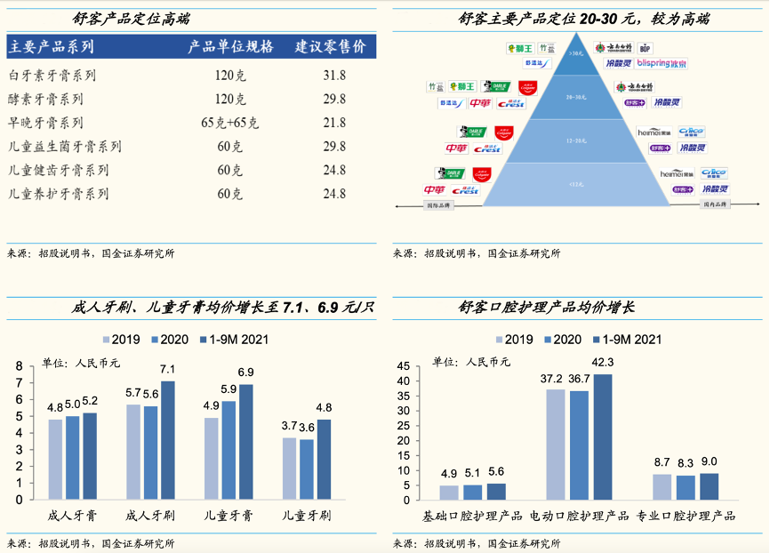 經(jīng)典案例:根據(jù)招股說(shuō)明書、國(guó)金證券研究所等綜合資訊表明,薇美姿圍繞新場(chǎng)景、新功效進(jìn)行產(chǎn)品升級(jí),定位中高端。公司借助酵素、兒童益生菌等細(xì)分產(chǎn)品升級(jí),主要產(chǎn)品定價(jià)20-30元,屬于中高端產(chǎn)品。成人牙刷均價(jià)2019、2020 及 2021 前三季度分別為5.7、5.6及7.1元。