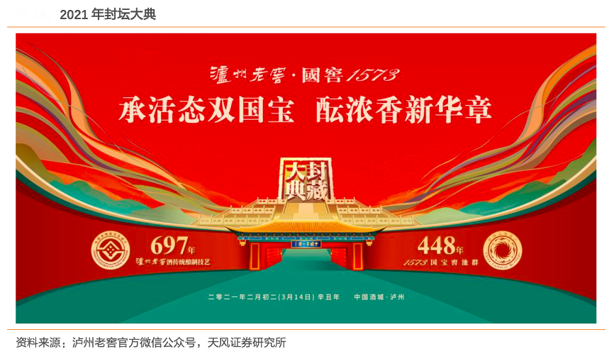 經典案例:根據瀘州老窖官網、天風證券研究所等綜合資訊表明,1573國寶窖池的連續使用年齡至今已超400年,國窖1573中能夠定量的香味成分為163種,而只能定性卻無法定量的成分還有 200 多種。國窖 1573 的主要釀造過程為原糧發酵、固態蒸餾、洞庫貯存和精心勾調,一個完整的釀造過程耗時長達 30 年以上。