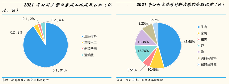 經典案例:根據公司公告、國金證券研究所等綜合資訊表明,味知香公司在專業預制菜行業中處于領先地位,2021年原材料成本占主營業務成本的91%左右,成本波動對公司盈利影響大。公司通過統一采購,通過與不同供應商比價及談判能夠獲得較低的采購價格,牛肉、禽類等主要原材料的采購價均低于市場批發價。