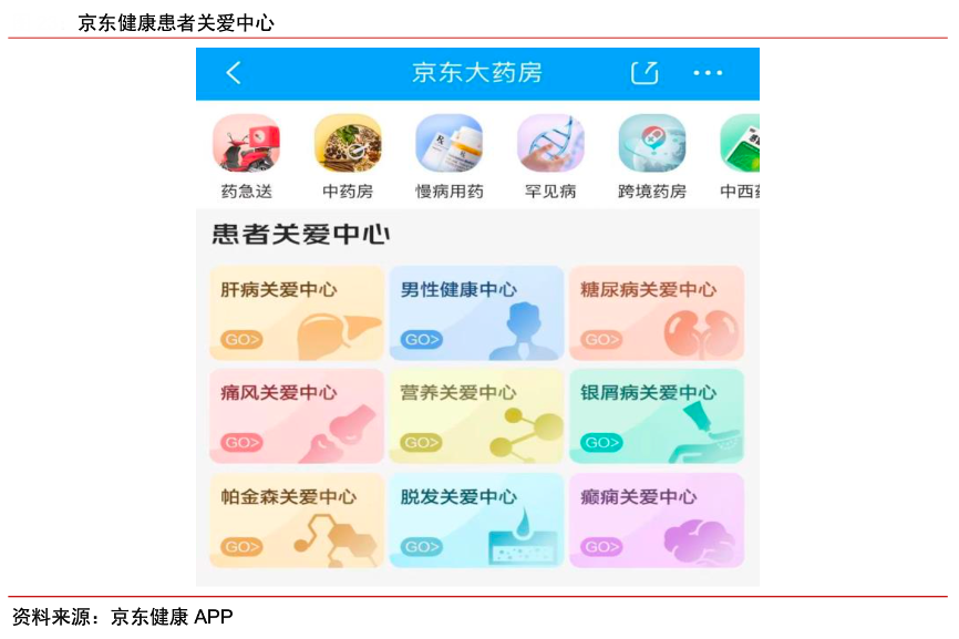 經(jīng)典案例:根據(jù)京東健康A(chǔ)PP、中信證券研究部等綜合資訊表明,針對(duì)慢病用戶(hù),京東健康建立京東大藥房單病種關(guān)愛(ài)中心,提供專(zhuān)業(yè)的藥學(xué)服務(wù),提高人均用藥天數(shù)。在保健滋補(bǔ)領(lǐng)域,公司聚焦消費(fèi)者精細(xì)化、專(zhuān)業(yè)化的營(yíng)養(yǎng)攝入需求,打造多樣化的消費(fèi)場(chǎng)景,如開(kāi)展“超級(jí)品類(lèi)日”活動(dòng),上線(xiàn)健康資訊欄目,開(kāi)通“問(wèn)營(yíng)養(yǎng)師”服務(wù)入口等。