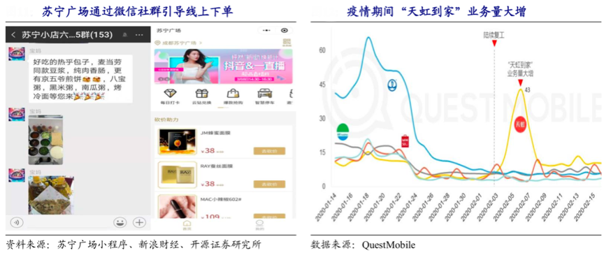 傳統企業的數字化技術轉型升級快速推進,全渠道營銷策劃成為企業的必選項,數字品牌策劃成為傳統企業新零售策劃運營的“新亮點”。據蘇寧廣場小程序、新浪財經、開源證券研究所等綜合資訊表明,蘇寧引導旗下的蘇寧廣場分別建立了自己的營銷社群,通過掃碼進群、線上點單、物流配送的方式,讓消費者足不出戶即可享受廣場內的產品和服務; 據QuestMobile等綜合資訊表明,天虹百貨推出了“百貨到家”服務,消費者可以選擇“天虹”小程序或者APP的專柜發貨服務,下單配送到家;越來越多的商家通過直播電商的方式進行營銷,根據淘寶數據,2月份新開淘寶直播商家環比上漲719%。此外,2月份淘寶直播商家獲得的訂單總量,平均每周都以20%的速度增長。
