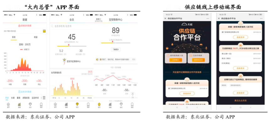 經典案例:據東北證券、公司APP等綜合資訊表明,天虹“大內總管”系列App銷售實時數據更新同步,支持商品以及會員信息的查詢,助推便捷辦公,能夠有效實現銷售規范以及協同工作。