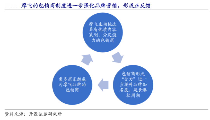 經典案例:根據開源證券等綜合資訊表明,摩飛品牌主動挑選具有內容策劃、分發能力的承銷商,其區別于傳統渠道商強調的物流、客服、資金等能力,更看重分銷商的內容策劃、分發能力,而隨著眾多具有內容策劃分發能力的分銷商形成合力,無形中又進一步提升知名度,延長爆款周期,吸引更多商家想成為摩飛的包銷商,形成積極的正反饋。