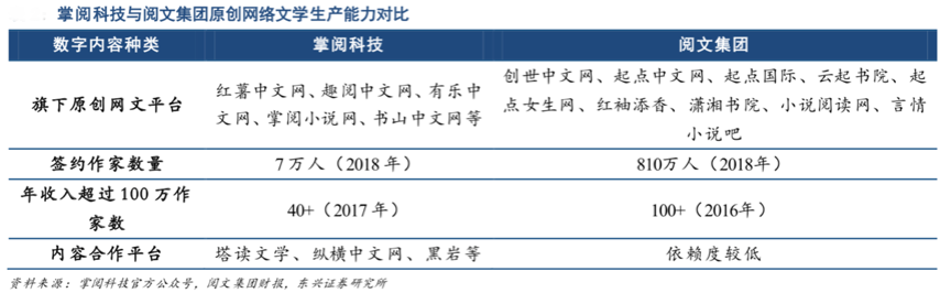 就數字閱讀電商新零售品牌策劃營銷而言,系列且新穎的“內容體系”是第一位的,基于高品質內容強化數字化內容運作機制搭建,依托于網絡內容眾創、知名作家共建等搭建數字閱讀內容平臺,大勢所趨。根據掌閱科技官方公眾號、閱文集團財報和東興證券研究所等綜合資訊表明,掌閱科技 2015 年正式成立“掌閱文學”后,合計簽約作家數超過 7 萬(2018 年)。以年收入超過 100 萬作家數指標對比,掌閱科技數字內容生產能力僅次于閱文集團,處于行業領先水平。