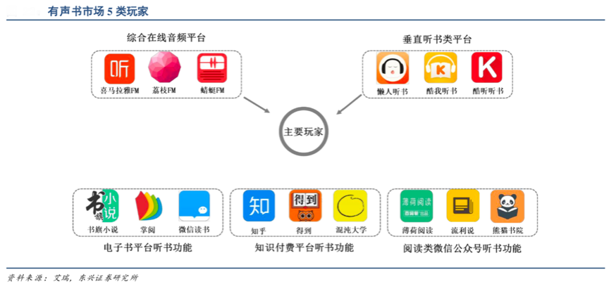 “多方聯合”,聯合互聯網平臺入局“有聲書市場”。“有聲書”市場正顯示著強大的市場潛力及良好的成長性,對于數字閱讀企業來說,極有商業策劃價值。根據艾瑞網、東興證券研究所等綜合資訊表明,2018年國內有聲書用戶規模為 3.85 億人,2020 年有望達到 5.62 億人。有聲書發展潛力吸引眾多互聯網企業入局。內容豐富、用戶基數大的綜合在線音頻平臺,布局有聲書細分領域較早、產品針對性較強的垂直聽書類平臺,此是有聲書市場的主要玩家。數字閱讀企業正可以與互聯網平臺聯手,內容資源共享,流量優勢互補,“聯合會員”加入優惠、共享折扣,共同做強“有聲書市場”。
