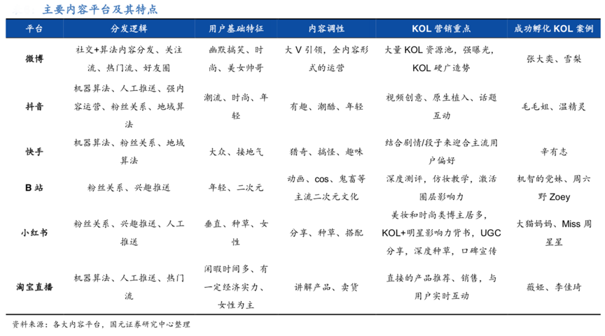 內(nèi)容是直播電商業(yè)務(wù)的重要競(jìng)爭(zhēng)利器,根據(jù)各大內(nèi)容平臺(tái)、國(guó)元證券研究中心等綜合資訊表明,優(yōu)秀的直播電商新零售企業(yè)多數(shù)橫跨微博、抖音、快手、B站等多個(gè)內(nèi)容平臺(tái),有自己的品牌價(jià)值,更有自己的內(nèi)容調(diào)性,圍繞著用戶的消費(fèi)基因,放大基于品牌特性的調(diào)性,同時(shí)激活KOL營(yíng)銷能量,通過(guò)視頻表現(xiàn)、創(chuàng)意發(fā)想、測(cè)評(píng)互動(dòng)等亮化品牌內(nèi)容體系,視頻類平臺(tái)在此類市場(chǎng)競(jìng)爭(zhēng)中占據(jù)了“競(jìng)爭(zhēng)優(yōu)勢(shì)”。