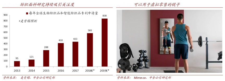 根據Mirror Co.、中金公司研究部等綜合資訊表明,在銷售方面,支持 AR/VR 的交互式虛擬購物(例如 Lululemon 以 5 億美元收購了 居家健身平臺 Mirror Co.)雖然仍處于早期階段,但有望重新定義線上零售并將消費觸點從店內擴展到人們家里,從而形成“服務顧客”的新方式。